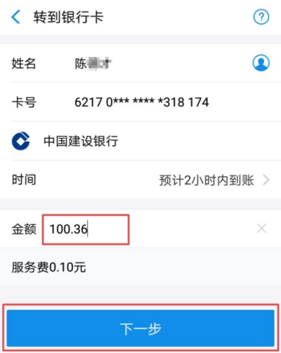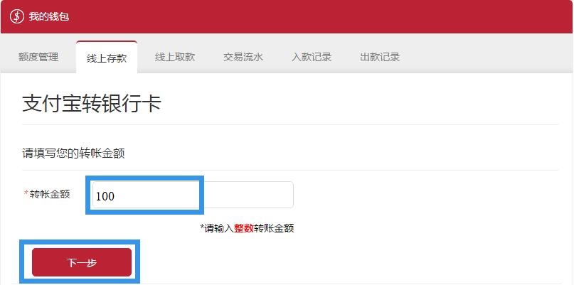 输入您要转账的金额(必须为整数),再点击下一步。